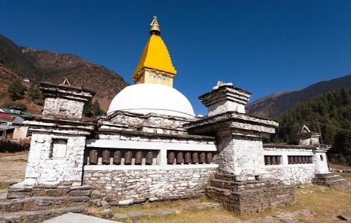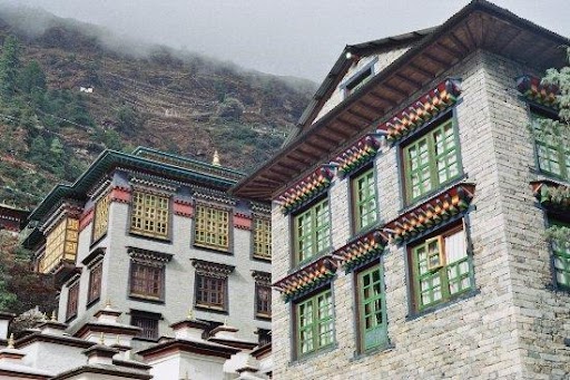 The breathtaking view extends beyond, dispersing throughout the valley and reaching Chiwong Monastery before descending to Phaplu. Following the trail from the hillside's edge to the stream, we cross the river. On the opposite side, the path ascends to Rigmo, providing a stunning view. After a village stop for breakfast, a final uphill walk leads to Salleri, concluding the day with an overnight stay in a lodge.